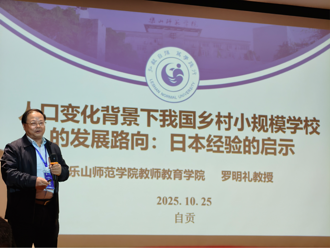 罗明礼作了题为《人口变化背景下我国乡村小规模学校的发展路向》的研究分享。他首先从学龄人口下降、小规模学校增加和师资分配不均的方向去分析国内目前乡村小学存在的问题;其次以日本小规模学校的探索和发展经验为例,提出学校功能多样化、社区-学校联合方式、教育资源均衡与优化等方面的路径措施;然后提出了加强专业教师的培养、推进教育模式理念优化等策略;最后他点明乡村小规模学校是乡村教育的兜底力量、需要坚持以人为本,继续深入推进教育的优质与均衡。