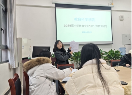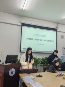 2025年1月3日上午,2021级小学教育1班教育研习活动在特教大楼B栋101室成功举行,旨在通过对集中研习交流教育实习过程中的心得体会,总结经验以提升师范生的教育教学能力,促进他们对教育事业的深入理解和实践探索。
